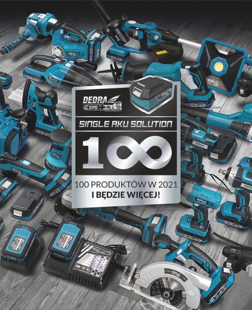 W DEDRA, nasz zespół każdego dnia pracuje nad tym aby sprostać oczekiwaniom klientów. Cały czas rozwijamy gamę naszych produktów, wprowadzając nowe rozwiązania i udoskonalając już istniejące. Zakup DEDRA SAS+All to inwestycja w przyszłość. Wciąż rozwijany system jednego akumulatora dla wielu urządzeń pozwala Ci już teraz korzystać z możliwości, których w przyszłości będzie coraz więcej, wciąż wykorzystujących akumulator, który już posiadasz! W 2021 osiągniemy liczbę 100 produktów w ramach serii DEDRA SAS+All.