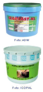 - emulsje asfaltowe - są to zawiesiny cząstek asfaltu w wodzie, służą do gruntowania betonu, do przyklejania papy asfaltowej do ścian fundamentowych, mogą również stanowić samodzielną izolację, można nakładać je na wilgotne podłoża, schną do kilkunastu godzin, nie rozpuszczają styropianu,