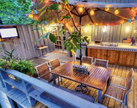 Doskonałym doświetleniem tarasu może być umiejscowiona w strefie roślin lampa imitująca w czasie dnia kamień ogrodowy, a wieczorem dająca subtelną poświatę. Pomysłowa ozdoba będzie szczególnie sprawdzała się przy tarasie na gruncie lub w sąsiedztwie podestów ogrodowych. Miła dla oka barwa światła i odpowiednie natężenie budują wspaniale wieczorny letni klimat w zewnętrznej strefie odpoczynku.