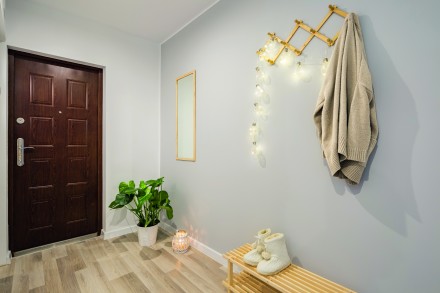 Wygodzie użytkowania przedpokoju służy dobre doświetlenie. Zadbajmy o dobre światło ogólne. W tej roli sprawdzą się plafoniera lub spoty z ruchomymi ramionami dającymi światło kierunkowe. Gdy wnętrze jest szerokie, zaplanujmy światło boczne, np. kinkiety nad lustrem. Można je też ozdobić modnymi girlandami, które oświetlą ścianę oraz dodadzą jej głębi.