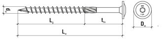 Wkręt konstrukcyjny z łbem podkładkowym i gniazdem TX WKCP - 6 x 220 mm, 6 x 240 mm, 6 x 260 mm, 6 x 280 mm, 6 x 300 mm, 8 x 40 mm, 8 x 50 mm, 8 x 60 mm, 8 x 320 mm, 8 x 340 mm, 8 x 360 mm, 8 x 380 mm, 8 x 40 mm, 10 x 360 mm, 10 x 380 mm, 10 x 400 mm