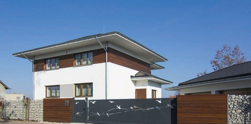 Zdj 3. Ocieplenie domu to okazja do unowocześnienia wyglądu elewacji. Nowy tynk można połączyć z modną oblicówką z drewna lub materiałów drewnopodobnych.