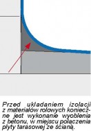 To szczeliny konstrukcyjne taśm uszczelniających. przejmujące naprężenia, które powstają wskutek ruchów warstw tarasu. Muszą przechodzić przez wszystkie jego warstwy, z pominięciem elementów konstrukcyjnych (płyta tarasowa lub strop nad pomieszczeniem). Powinny znaleźć się między ścianą budynku a tarasem oraz dzielić taras na pola o bokach 2x2 m lub 3x3 m. Wykonane w warstwie spadkowej muszą być przeniesione na warstwę dociskową i okładzinę - dylatacja przebiega w szczelnie pomiędzy płytkami. Dylatacje wypełnia się trwale elastycznym materiałem: paskami styropianu, taśmami uszczelniającymi lub sznurem polipropylenowym. Na koniec osłania się je mrozoodpornym silikonem.