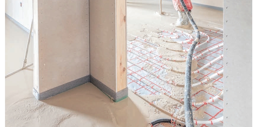 Wylewka na ogrzewaniu podłogowym jest naprzemiennie ogrzewana i wychładzana. Maksymalna temperatura wody zasilającej przewody podłogówki wynosi 55°C. Dlatego podkład musi być odpowiednio wytrzymały, aby w takich warunkach nie uległ spękaniu. Oczywiście powinien dobrze przewodzić ciepło. Najlepszym rozwiązaniem w tym przypadku są wylewki anhydrytowe lub cementowe. Dużym atutem podkładu anhydrytowego jest lepsze przewodnictwo ciepła i wysokie właściwości termoizolacyjne. Czas nagrzewania instalacji ogrzewania podłogowego w przypadku wylewki anhydrytowej jest prawie dwukrotnie krótszy od standardowego podkładu cementowego. Ponadto jastrychy anhydrytowe sprawdzą się, gdy mamy ograniczoną wysokość warstw podłogowych. Gdy zależy nam na ograniczeniu kosztów, dobrym wyborem będą zaprawy cementowe.